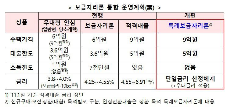 금융위원회가 발표한 '보금자리론 통합 운영 계획안' 출처:금융위 728x90유의사항