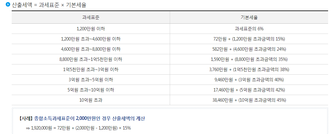 과세표준 출처 : 국세청 소득이 과세표준에 가깝다면 소득공제를 이용해 기준 아래로 내리는 것이 중요하다.