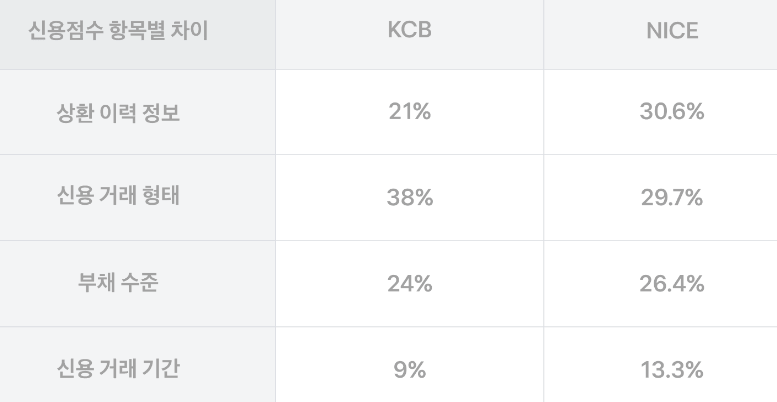 2가지 신용평가사는 개개인의 신용을 볼 때