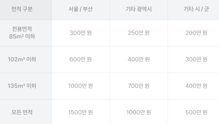 민영주택 예치금 면적 기준