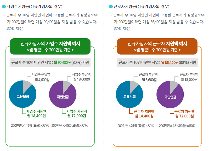 신규가입 근로자 및 사업주가 부담하는 고용보험과 국민연금 보험료의 80%