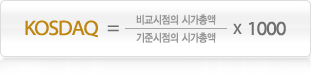 코스닥 지수 코스닥시장 전체의 주가동향을 파악할 수 있는 투자분석지표이다.